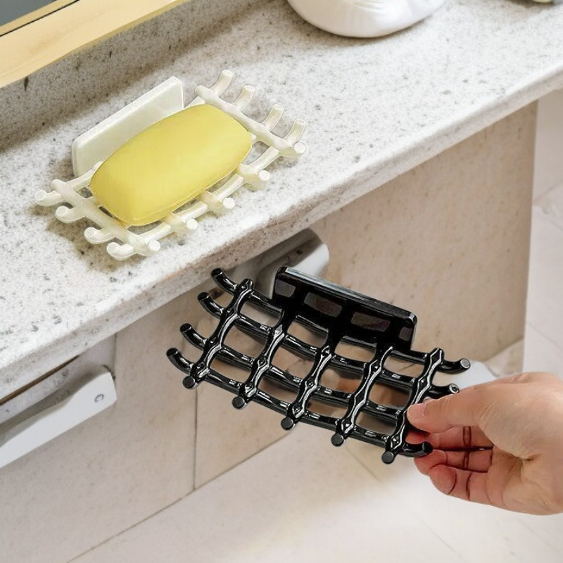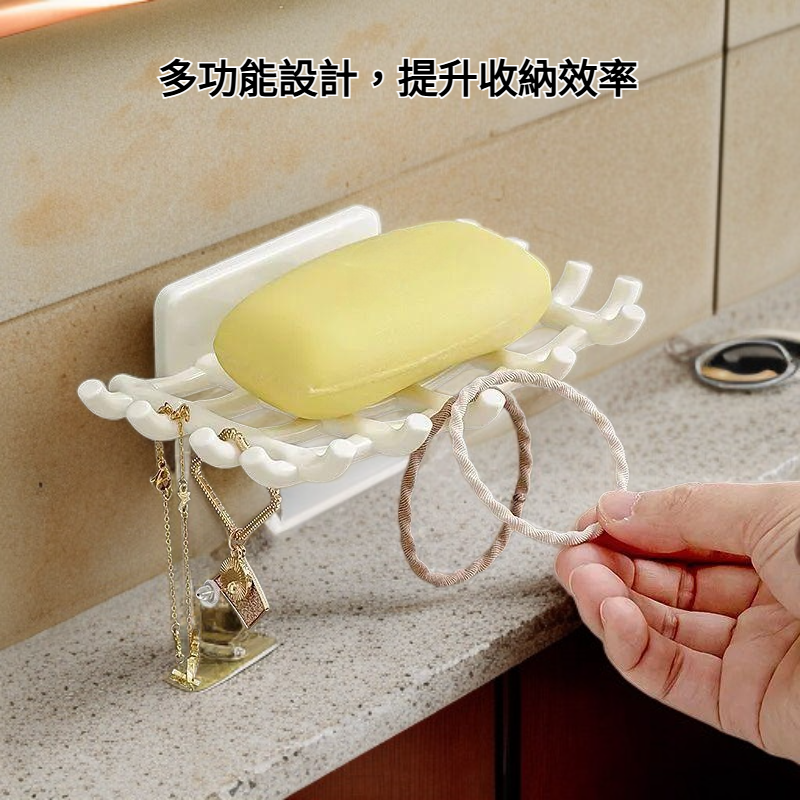 ● 壁掛式設計,免打孔安裝,保護牆面,輕鬆收納肥皂,適合各種浴室與衛生間空間使用。