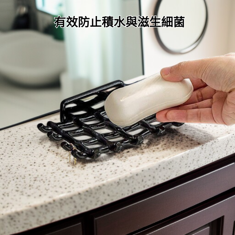● 獨特鑲空瀝水結構,有效防止積水與滋生細菌,保持香皂乾爽不軟化,延長使用壽命。