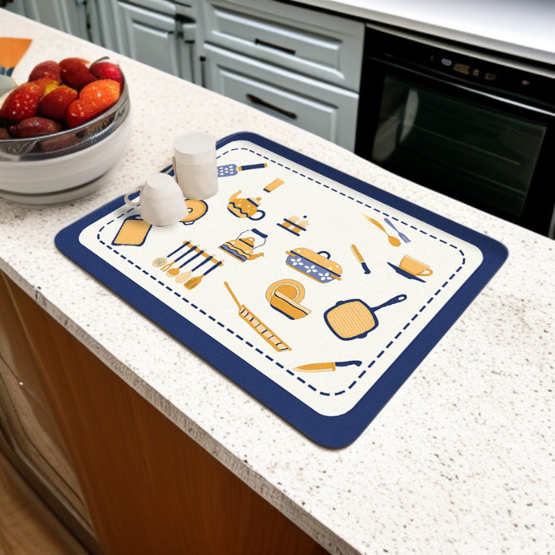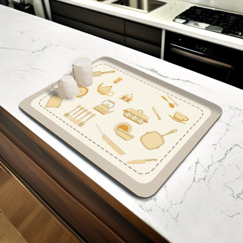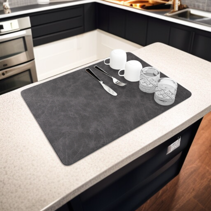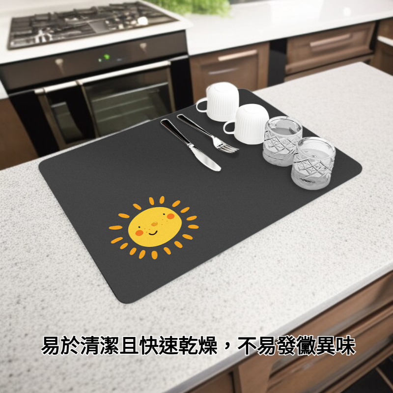 ● 採用柔軟矽藻泥材質,吸水力強,能迅速吸收檯面水漬,保持廚房乾爽整潔,告別濕滑困擾。